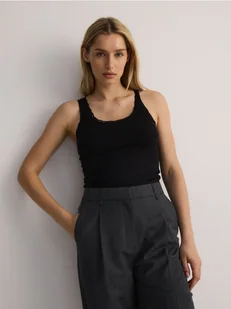 Reserved - Bawełniany top z koronką - czarny