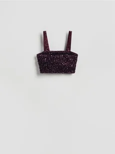 Top o dopasowanym kroju, wykonany z dzianiny z cekinami.