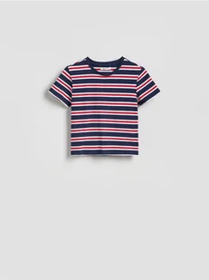 Reserved - Krótki t-shirt w paski - granatowy