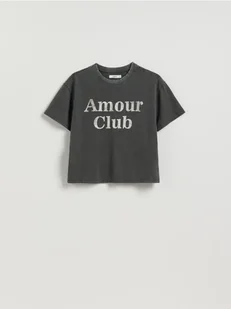 Reserved - Krótki t-shirt z nadrukiem - ciemnoszary