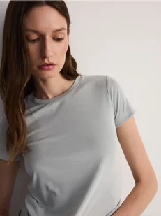 Reserved - Prążkowany t-shirt z modalem - jasnoszary