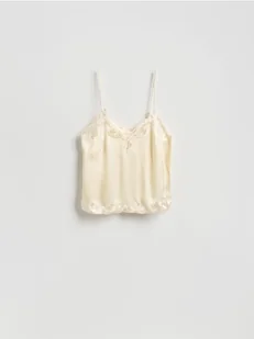 Reserved - Satynowy top z wiskozy - złamana biel