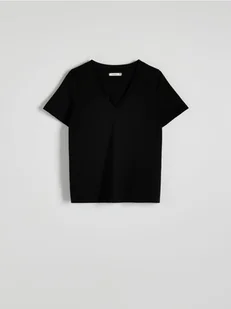 Reserved - T-shirt regular z dekotem V - czarny