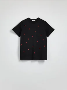 Reserved - T-shirt regular z drobnym haftem - czarny