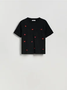 T-shirt o prostym fasonie, wykonany z bawełnianej dzianiny.