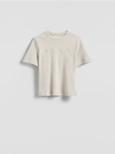 Reserved - T-shirt z haftowanym napisem - beżowy