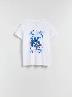 T-shirt o prostym kroju, wykonany z bawełnianej dzianiny.