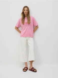 T-shirt o swobodnym kroju, wykonany z bawełnianej dzianiny.