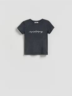 Reserved - T-shirt z nadrukowanym napisem - ciemnoszary