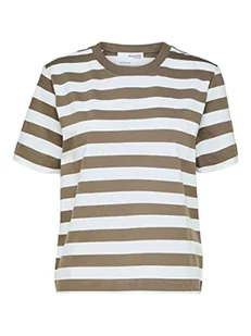 SELECTED FEMME T-shirt damski w paski, Morel/Stripes:Bright White - Wide, XL
