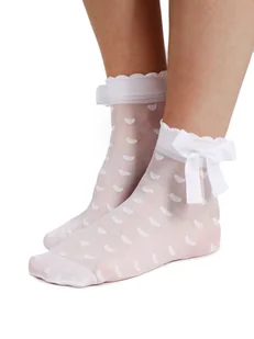 Skarpety dziewczęce rajstopowe w serca białe z kokardką 20 DEN 35-38 YOCLUB
