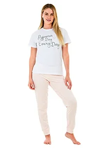 Sleepdown Damska piżama damska wygodna miękka piżama dzień każdego dnia 2-częściowa bielizna nocna bielizna nocna z krótkim rękawem top i dół piżama piżama, biały, różowy, L