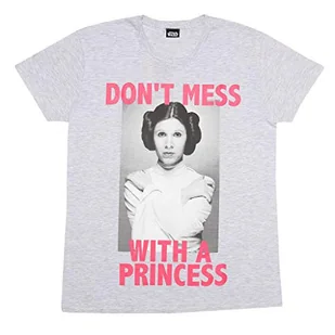 Star Wars Princess Leia Don't Mess Boyfriend Fit T-shirt damski, S-5XL, szary, oficjalny towar, szary, XL