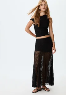 Stradivarius Asymetryczna koszulka koronkowa Czarny L