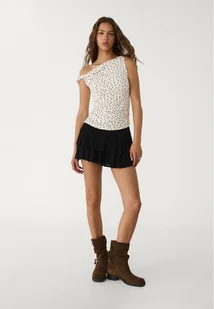 Stradivarius Asymetryczna koszulka z marszczeniami w grochy Jasnoszary M