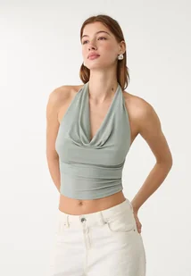Top z lejącym dekoltem typu halter odsłaniającym ramiona. Dostępny w różnych kolorach.