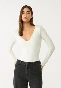 Stradivarius Body z poliamidu z dekoltem w serek Biały L