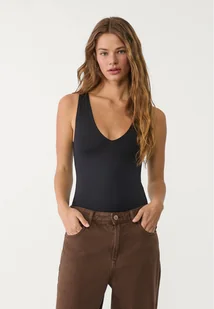 Stradivarius Body z poliamidu z dekoltem w serek Czarny M