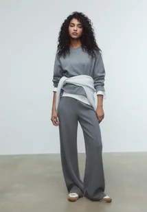 Stradivarius Dzianinowa koszulka z okrągłym dekoltem Ciemnoszary XS