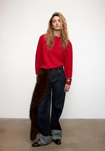 Stradivarius Dzianinowa koszulka z okrągłym dekoltem Czerwony M