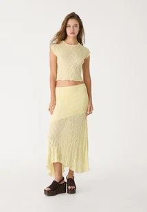 Stradivarius Koszulka z koronki z mini rękawem Żółty pastelowy M