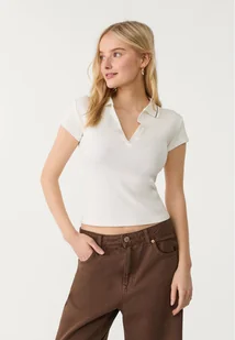 Koszulka polo z kołnierzykiem, dekoltem w serek i krótkim rękawem. Dostępna w różnych kolorach.