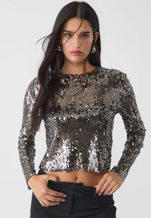 Stradivarius Koszulka z długim rękawem i cekinami Ciemnoszary XL