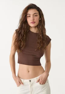 Stradivarius Krótka dopasowana koszulka basic Brązowy S