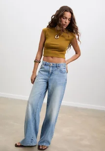 Stradivarius Krótka dopasowana koszulka basic Zielony M