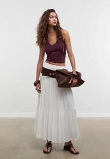 Stradivarius Krótki top halter BAKŁAŻANOWY L