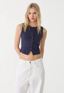 Stradivarius Podstawowy top na guziki Morski XS
