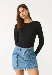 Stradivarius Koszulka z długim rękawem i prążkowaniem Czarny XL