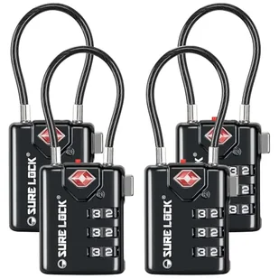 SURE LOCK TSA kompatybilne zamki bagażowe podróżne, wskaźnik inspekcji, łatwe do odczytania tarcze, zatwierdzone przez TSA, ze stopem cynku, czarne, 4-pak, poważne