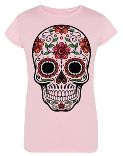 T-Shirt damski kolorowy nadruk CZASZKA r.L