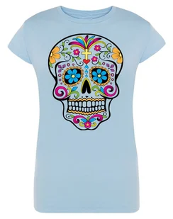 T-shirt damski z modnym nadrukiem CZASZKA Día de Muertos. fason regularny dekolt okrągły modny, stylowy nadruk materiał dopasowujący się do sylwetki skład ma...