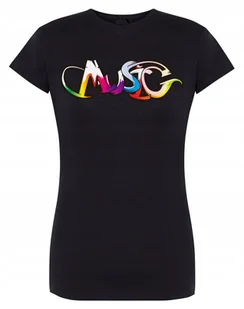 T-Shirt damski kolorowy napis MUSIC r. S
