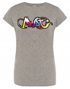 T-Shirt damski kolorowy napis MUSIC r. S