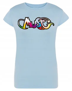 T-Shirt damski kolorowy napis MUSIC r. XL
