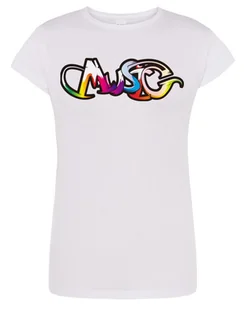 T-Shirt damski kolorowy napis MUSIC r. XL