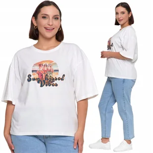 T-SHIRT DAMSKI KRÓTKI RĘKAW BAWEŁNIANY OVERSIZE MODNY NADRUK MORAJ XL OFF WHITE