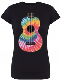 T-shirt damski z modnym nadrukiem Gitara Kolorowa. fason regularny dekolt okrągły modny, stylowy nadruk materiał dopasowujący się do sylwetki skład materiału...