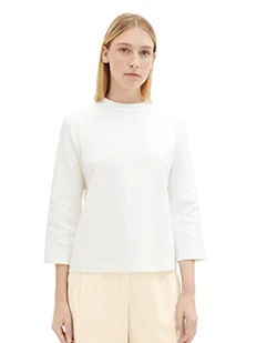 T-shirt damski TOM TAILOR z rękawami 3/4 i stójką, 10315-Szept Biały, XS