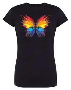 T-shirt damski z modnym nadrukiem MOTYL. fason regularny dekolt okrągły modny, stylowy nadruk materiał dopasowujący się do sylwetki skład materiału: 100% Baw...