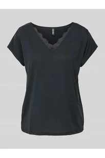 T-shirt damski Pieces;Model Kamala;Efekt: jednolity kolor;Krój: Krój regular fit;Aplikacja: Obszycie koronką;Dekolt: Dekolt w serek;Rękaw: