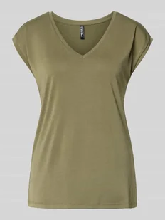 T-shirt damski Pieces;Model ‘Kamala’;Efekt: jednolity kolor;Krój: Krój relaxed fit;Dekolt: Dekolt w serek;Rękaw: krótki;Materiał: Mieszanka modalu