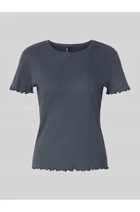 T-shirt damski Pieces;Model Marie;Efekt: jednolity kolor;Krój: Krój slim fit;Wzór: Perforowanie;Dekolt: Okrągły dekolt;Rękaw: