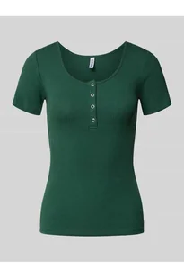 T-shirt damski Pieces;Model Kitte;Efekt: jednolity kolor;Krój: Krój slim fit;Aplikacja: krótkie listwy z zatrzaskami;Dekolt: Dekolt w łódkę;Rękaw: