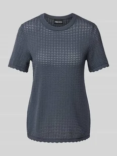 T-shirt damski Pieces;Efekt: jednolity kolor;Krój: Krój loose fit;Wzór: Ażurowy wzór;Dekolt: Okrągły dekolt;Rękaw: