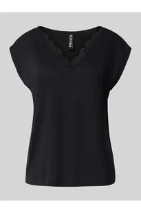 T-shirt damski Pieces;Model Kamala;Efekt: jednolity kolor;Krój: Krój loose fit;Aplikacja: Obszycie koronką;Detale: obniżone ramiona;Dekolt: