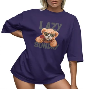 T-Shirt Oversize Luźna Koszulka Miś Róża Napis Xxxl Sukienka Jakość